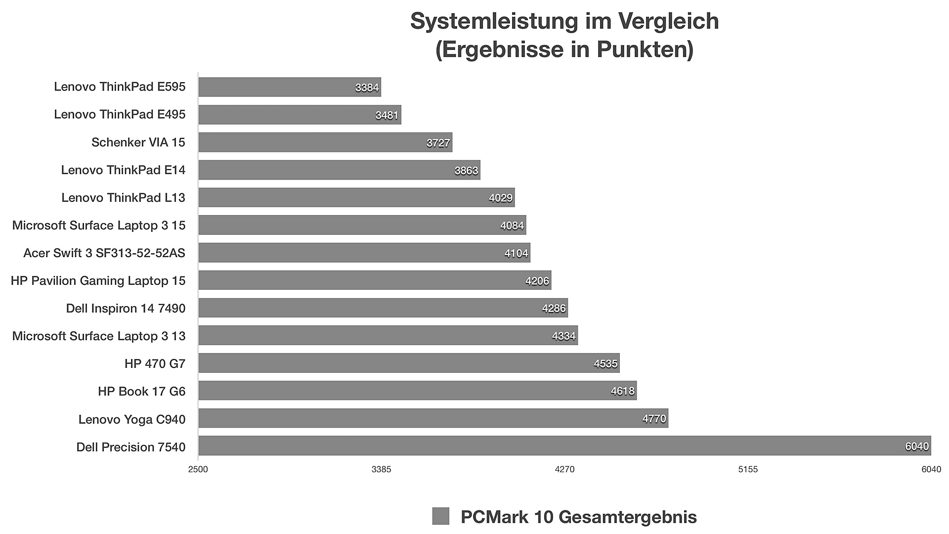 Die Systemleistung berücksichtigt das gesamte Spektrum der Leistungskomponenten und bewertet letztlich die Performance im Zusammenspiel. Dabei werden einfache Arbeitsabläufe wie Internetsurfen, Videokonferenzen oder die Startzeiten von Programmen genauso berücksichtigt, wie forderndere Projekte aus den Bereichen Videobearbeitung, Rendering oder Visualisierung.