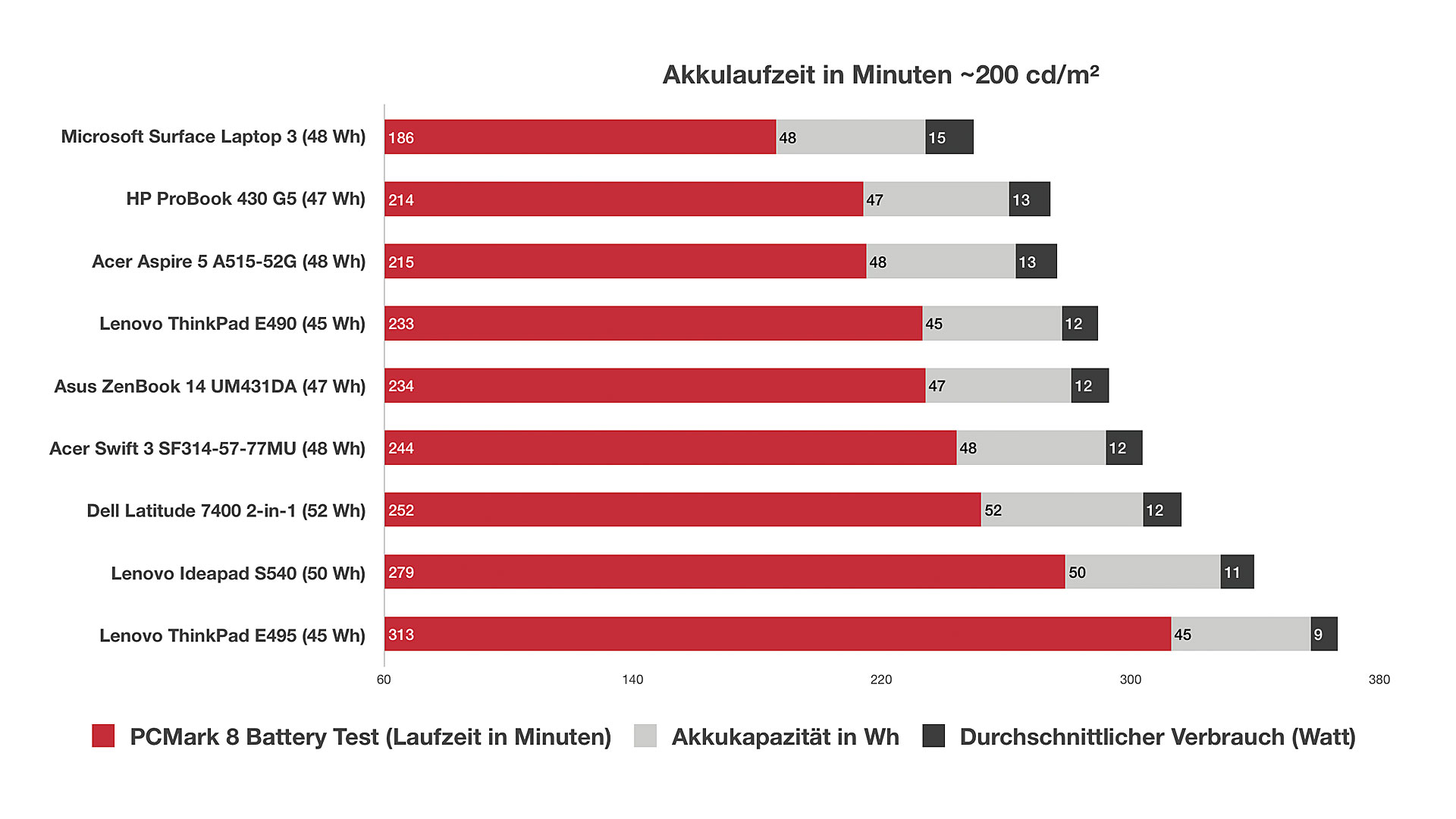 Energieverbrauch – Lenovo ThinkPad E495 | Leistungsaufnahme | Akkulaufzeit |