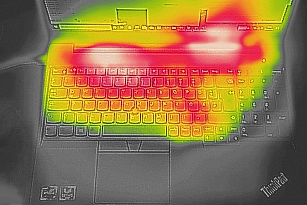 Im Vergleich zum getesteten Lenovo ThinkPad E495 sorgt die höhere Leistungsfähigkeit in der Folge auch für eine höhere Temperaturentwicklung.
